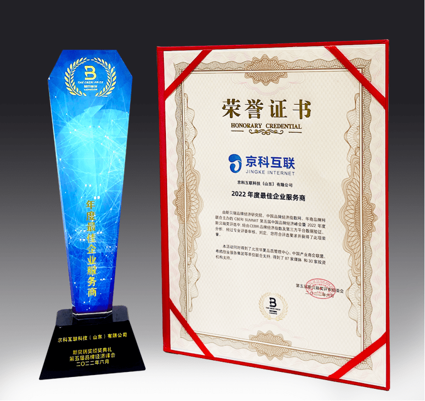 近日,2022斯贝瑞奖(The Cberi Prize)盛典暨第五届中国品牌经济峰会ONLINE活动于北京成功举行。京科互联科技(山东)有限公司通过层层遴选,从千家企业中脱颖而出,斩获“2022年度最佳企业服务商”大奖。