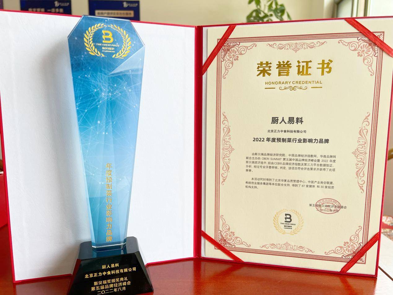 近日,在2022斯贝瑞奖(The Cberi Prize)盛典暨第五届中国品牌经济峰会上,“厨人易料”品牌通过层层遴选,从千家企业中脱颖而出,斩获2022年度预制菜行业影响力品牌,并被授予荣誉奖杯证书。