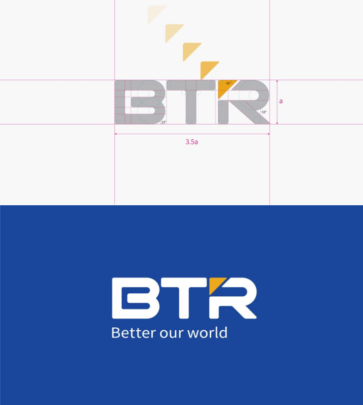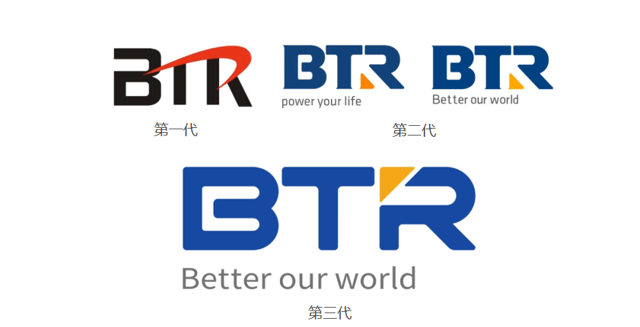 BTR标识升级,遵循了触摸时代脉搏、体现企业面貌的原则,依据全球化的品牌趋势,进行了简洁且具有高辨识的视觉降维,降低字重,统一粗细,增加字母的横向比例,重心下移,使其更精练与直接,代表着贝特瑞用新材料创新解决新能源发展问题,构建绿色制造生态助力双碳目标实现的决心。