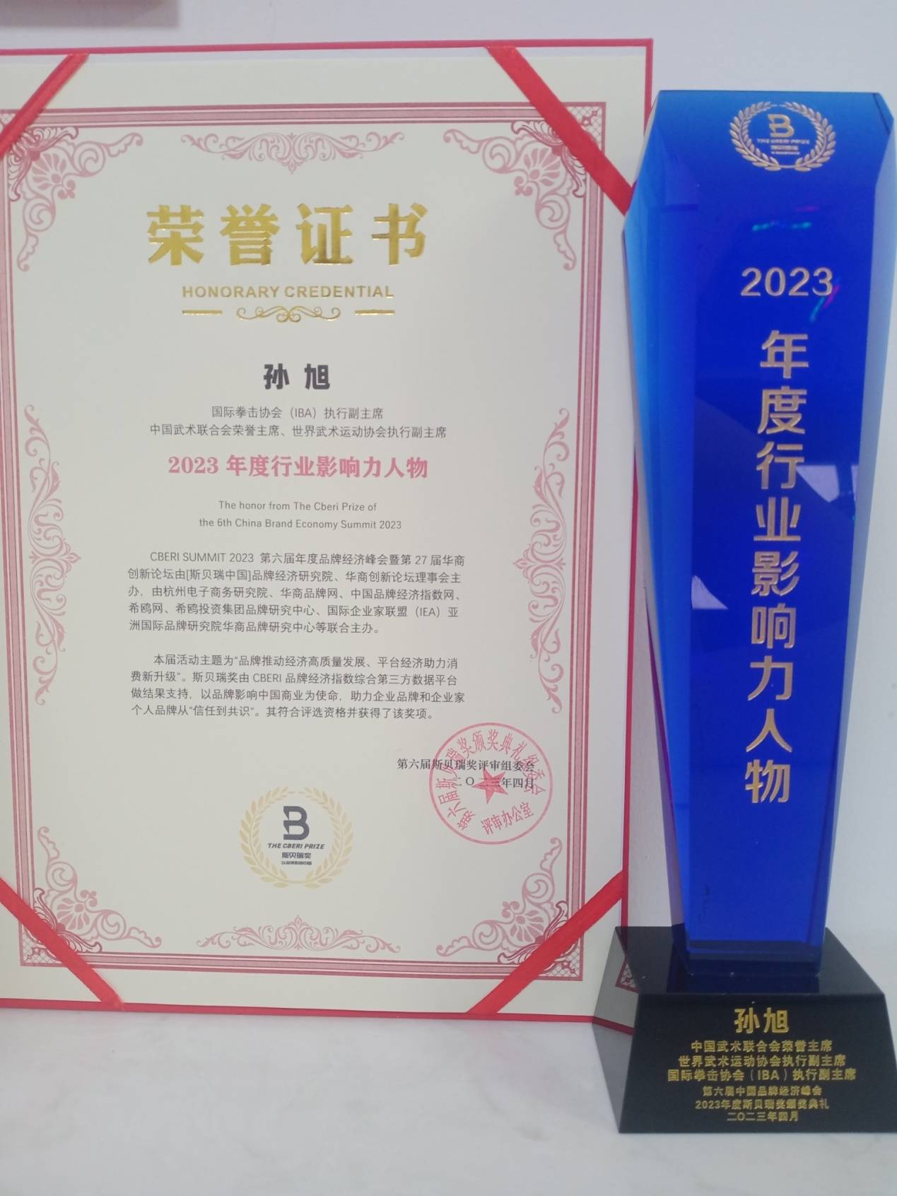 著名国际武术家、世界武术运动协会执行副主席、中国武术联合会荣誉主席、中国泰拳联合会荣誉主席、世界空手道协会副主席孙旭先生受邀参加峰会。在经过严格的考察和评审下,孙旭先生最终获得2023年度斯贝瑞年度行业影响力人物奖。