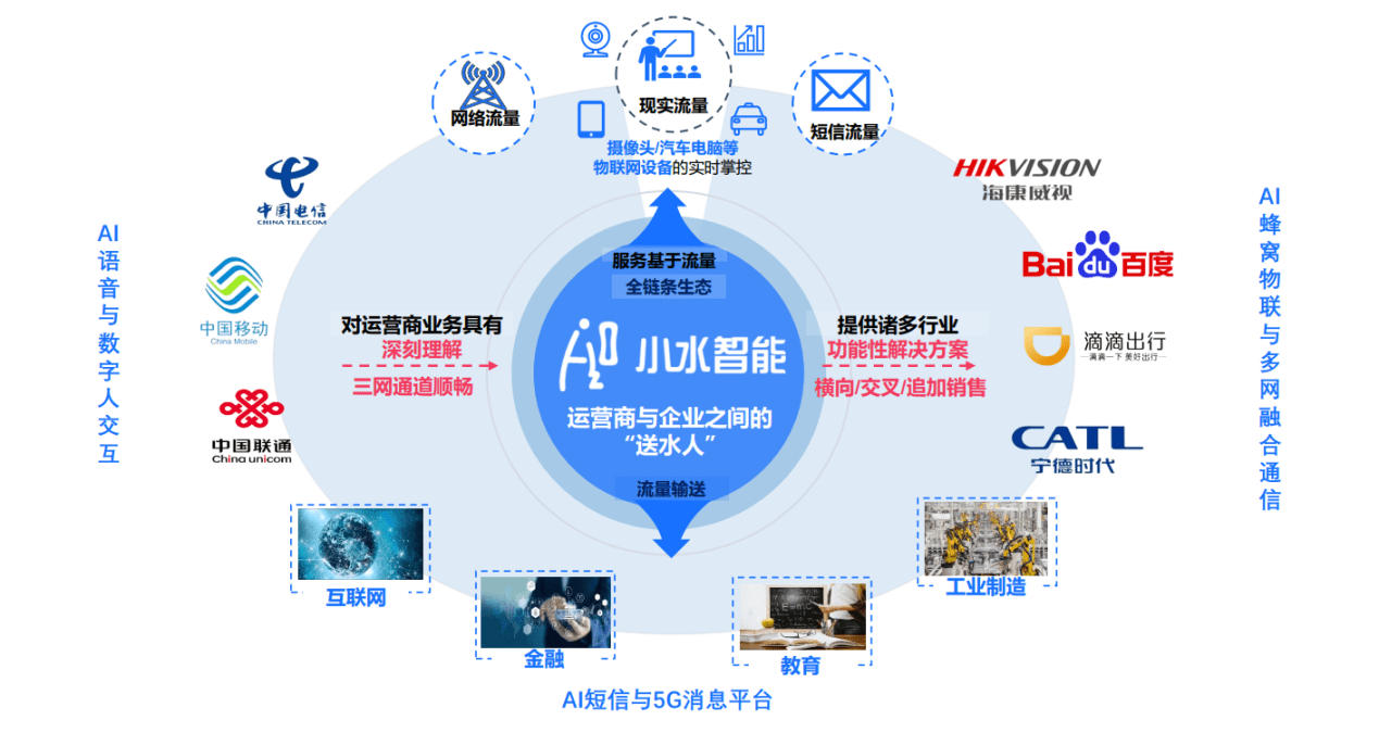 小水智能成立于2013年,是以AI+大数据为核心的云通信综合服务商,2022年被工信部认定为专精特新“小巨人”企业。作为信息与通信产业领域的创新型企业,小水智能将实现物与人、物与物、人与人之间更智能的连接作为发展愿景。目前围绕文本+5G消息、多网智能蜂窝物联、智能语音与数智人交互应用为核心产品服务,具备成熟的多模态信息连接与人机交互能力,为企业与用户间建立高效、安全、低成本、智能化的连接,助力企业数字化升级和高质量发展。