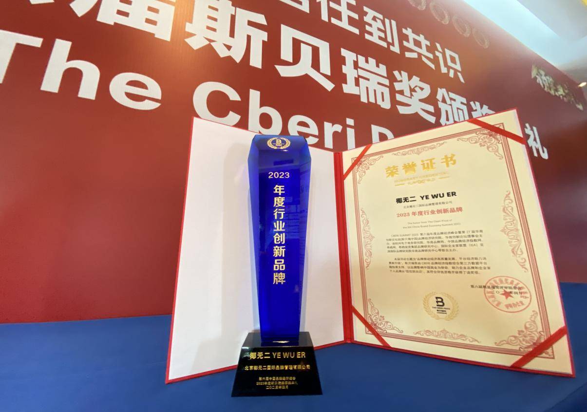 在晚上第27届华商创新论坛“杭州之夜”VIP交流活动开始之前,本次峰会还在现场揭晓了2023年度斯贝瑞奖评选结果。其中,北京椰无二国际品牌管理有限公司椰无二品牌荣获了2023年度行业创新品牌。
