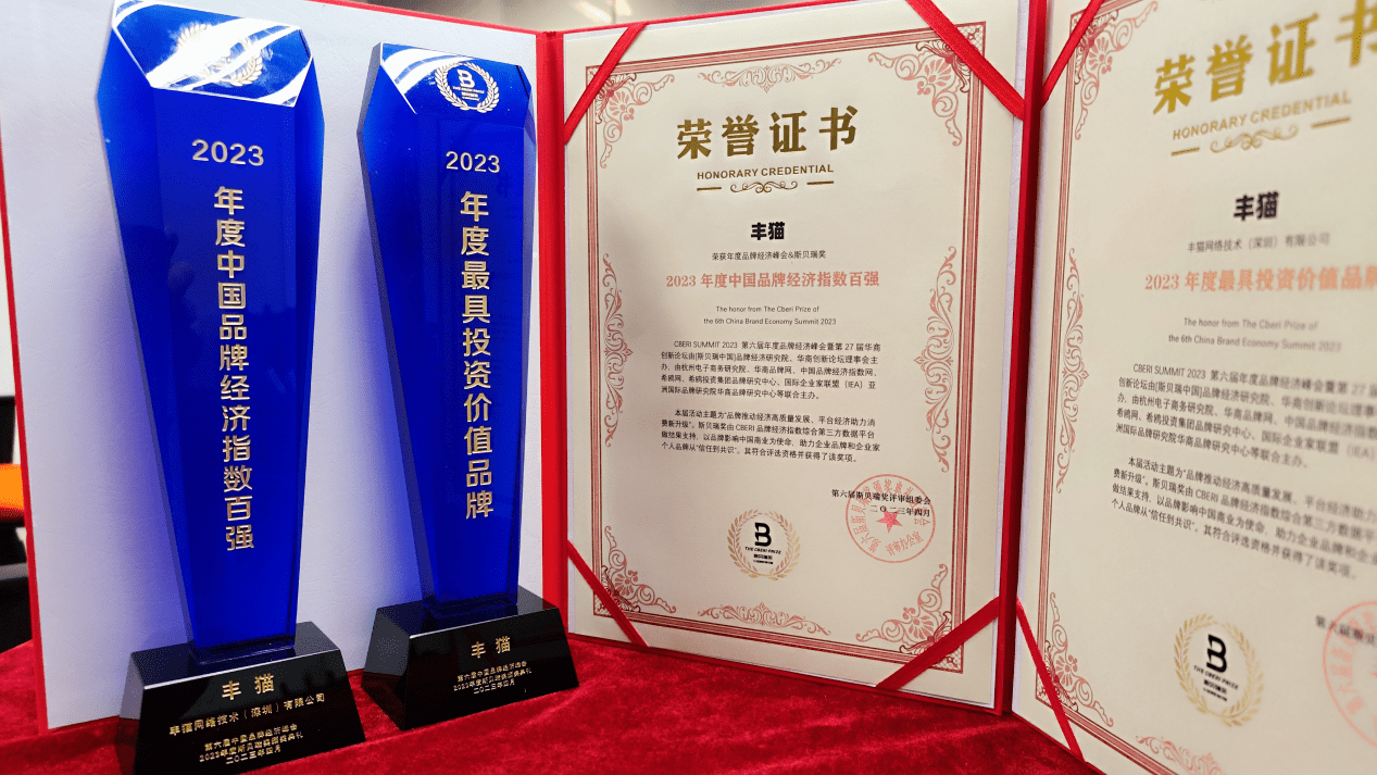 其中,丰猫荣获了斯贝瑞奖“2023年度品牌经济指数百强榜”、“2023年度最具投资价值品牌奖”双项殊荣。新明华·丰猫创始人/执行董事李奕萱女士出席颁奖仪式。