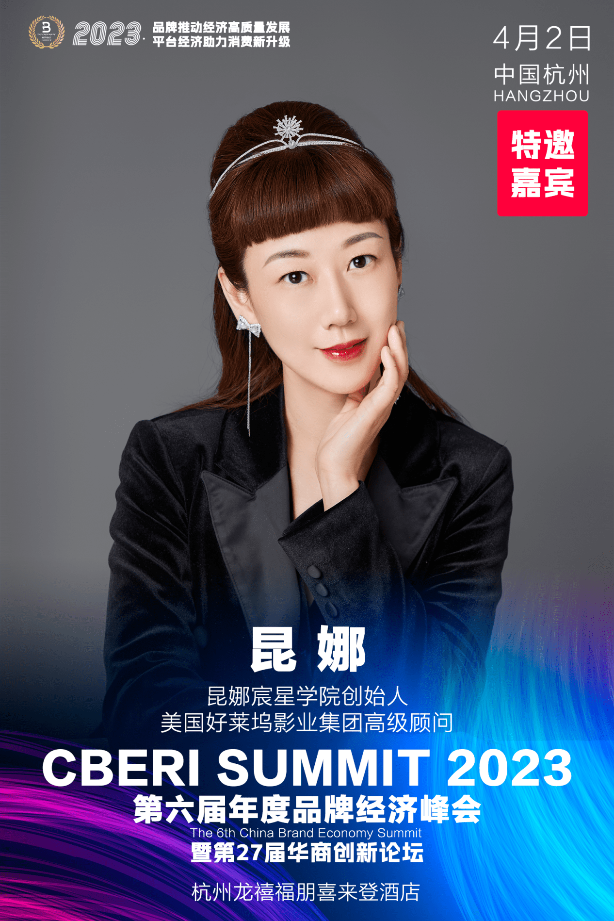 2023年4月2日,知名商企资源平台【昆娜宸星学院】创始人—昆娜女士,以组委会特邀嘉宾的身份,出席在浙江杭州龙禧福朋喜来登酒店成功举行的以“品牌推动经济高质量发展、平台经济助力消费新升级”为主题的CBERI SUMMIT 2023第六届品牌经济峰会暨第27届华商创新论坛。30余位行业菁英在现场热情分享,300余位创新创业家在会场参加活动,超过三万人通过照片和视频直播关注本次活动。