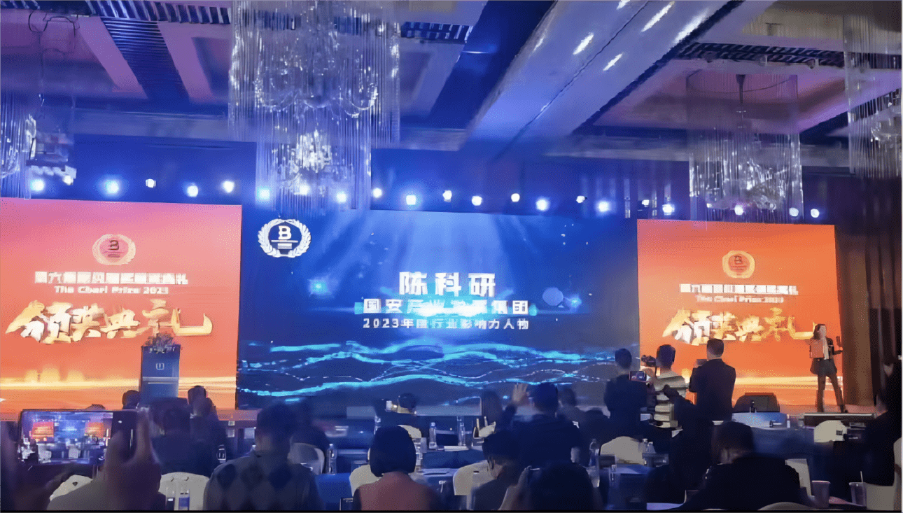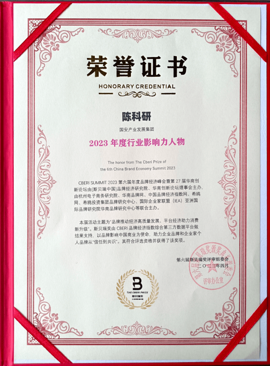 在晚上第27届华商创新论坛“杭州之夜”VIP交流活动开始之前,本次峰会现场揭晓了2023年度斯贝瑞奖评选结果。其中,国安产业集团陈科研先生荣获斯贝瑞奖“2023年度行业影响力人物”奖