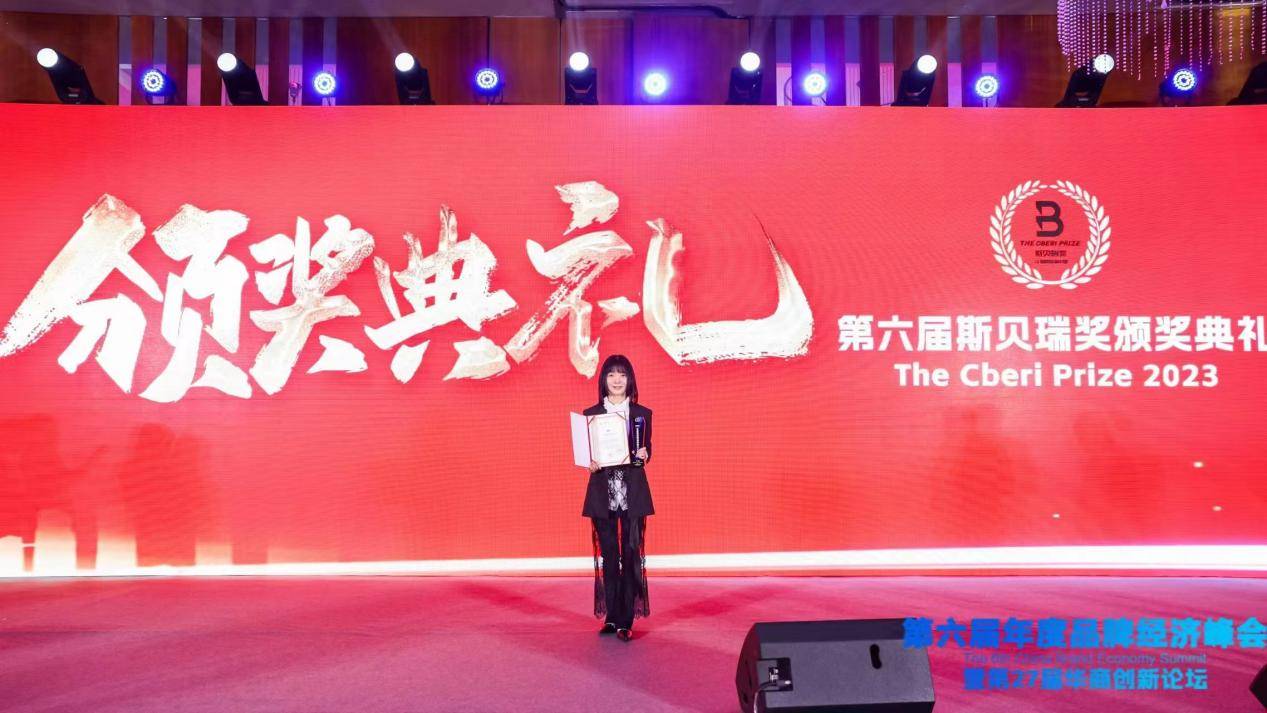 在晚上第27届华商创新论坛“杭州之夜”VIP交流活动开始之前,本次峰会还在现场揭晓了2023年度斯贝瑞奖评选结果。其中,吴婧荣获了2023年度智慧营销影响力人物奖。