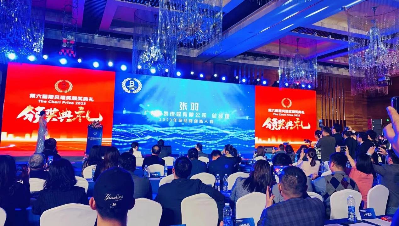 下午浙江电视台主持人宣布本次的获奖榜单,此次评选中,广东粤象传媒有限公司总经理张羽荣获2023年度品牌创新人物奖项。