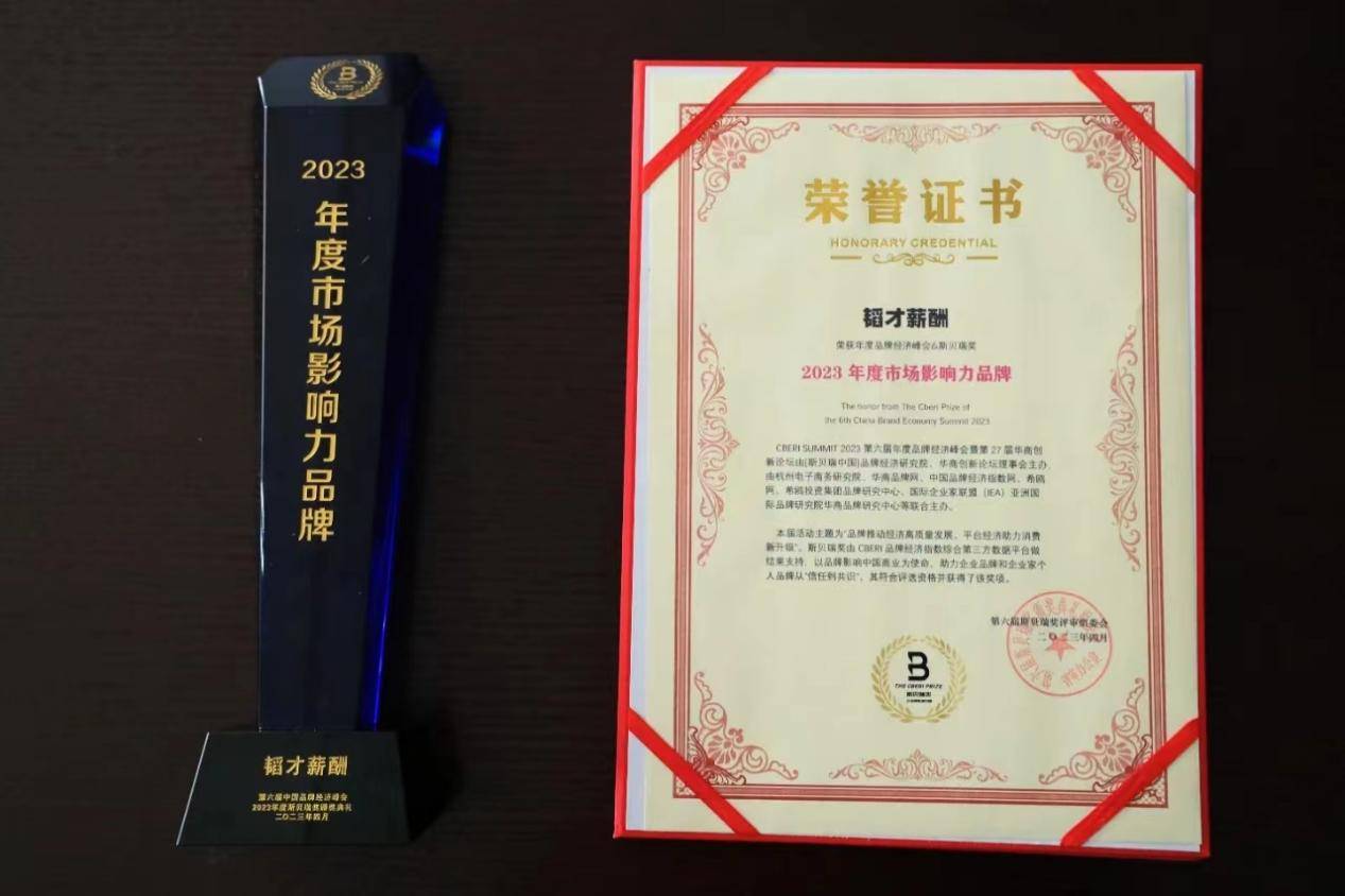 近日,2023 中国第六届品牌经济峰会暨第27届华商创新论坛“2023年度斯贝瑞奖(THE CBERI PRIZE 2023)评选及颁奖典礼”系列品牌活动于杭州成功举办。韬才薪酬荣获斯贝瑞2023年度市场影响力品牌。