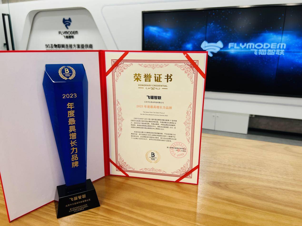 下午浙江电视台主持人宣布本次的获奖榜单,此次评选中,飞猫智联,荣获 2023年度最具增长力品牌奖项。