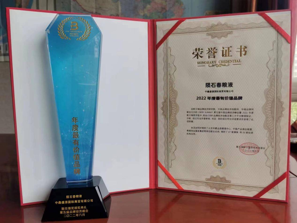在下午的活动上,主持人宣布陨石春粮液获评“2022年度最有价值品牌”