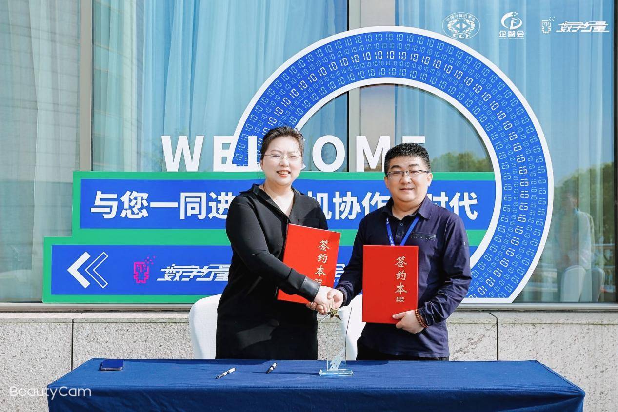 数字力量总经理龚燕玲(左一)与中电山河南通副总经理李华(右一)签约