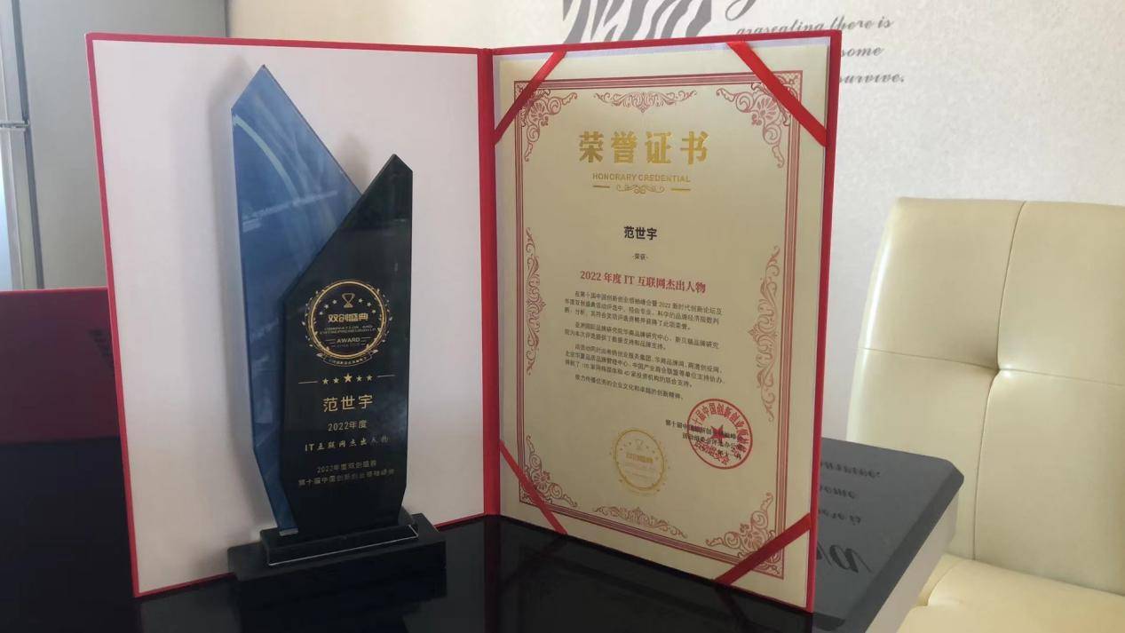 晚上举办了“中国创新创业领袖峰会深圳之夜晚宴”活动,活动开始前,主办方发布了“10届·10人”《十大创业人物》《十大创新人物》《十大风险投资人》等榜单以及单项奖项。基于候选人的行业影响力和创新力。最终,由特邀主持人宣布范世宇获评2022年度IT互联网杰出人物