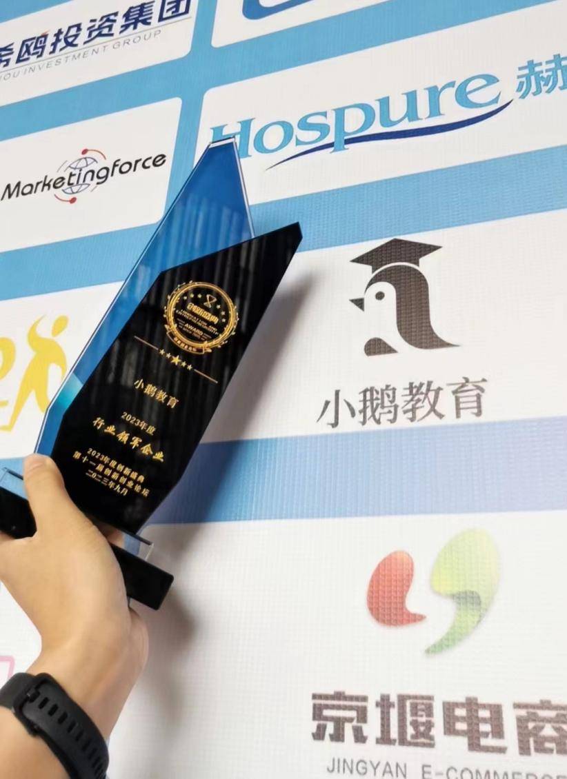 根据专业评委的评鉴和打分,凭借卓越的创新能力和行业影响力,在下午的活动上,活动特邀主持——新华社特约主持人渊博宣布小鹅教育(小鹅求职)获评第十一届创新创业论坛暨2023创新盛典“行业领军企业”。