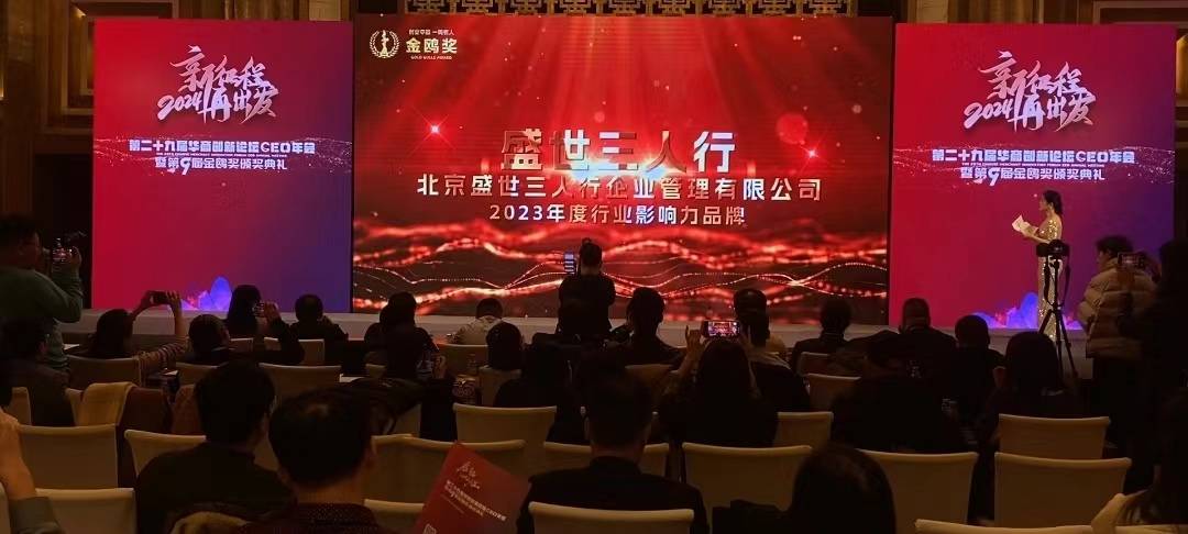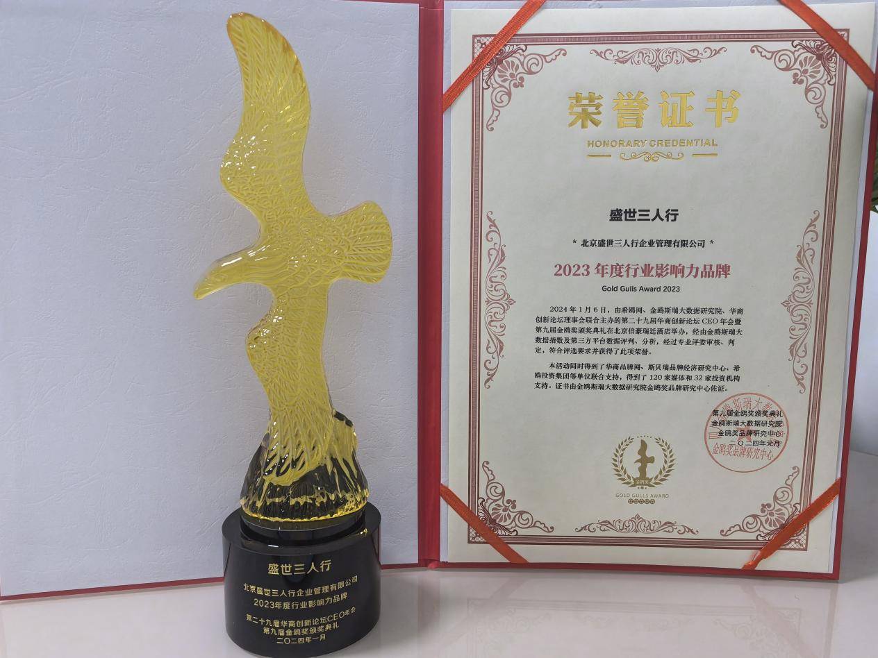其中主持人宣布,“盛世三人行”获评第九届金鸥奖《2023年度行业影响力品牌》奖。