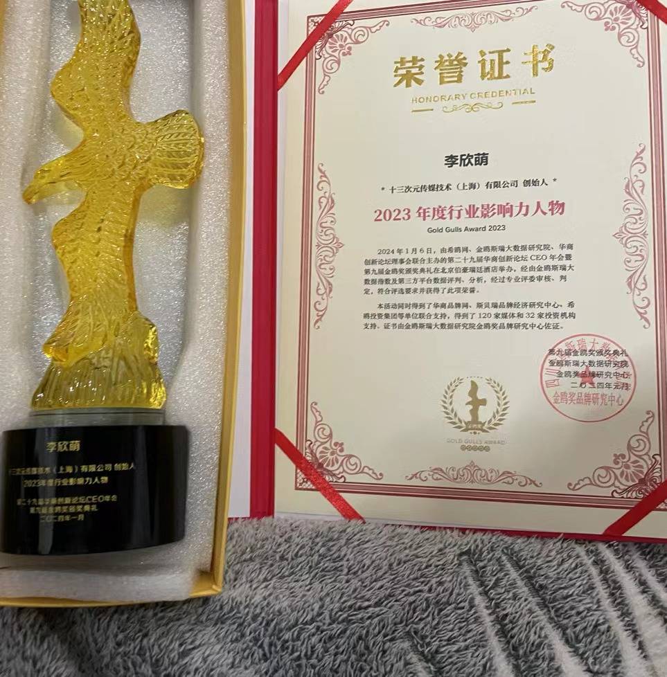 在活动上,慧聪集团创始人郭凡生等嘉宾做了精彩主题分享,其他特邀嘉宾围绕“创新驱动增长”“领导力与协作”“行动派的创业进阶”“2024投什么”“00后创业”进行了五场圆桌主题对话。活动唱响追求卓越创新、合作共赢的主旋律,为创业企业经济增长谋求动力,为经济高质量发展提振信心,为构建创新商业共同体探索路径。活动的最后环节,揭晓第九届金鸥奖评选结果。金鸥奖始于2016年1月,寓意“创业中国,一鸣惊人”,响应国家“助力经济高质量发展”的号召,旨在挖掘年度创新创业代表项目、人物,激励行业创新者、领跑者。自2016年1月6日起,每年举办一届。候选项目主要由机构推荐和项目自荐,分项目评审、主评委审核、奖项公示、颁奖典礼等阶段,本次共有2000个候选项目(人)提交资料角逐奖项。CPE源峰执行总经理徐巍、品牌专家张珊珊、分众传媒副总裁刘珊等作为金鸥奖评委,曾揭晓发布金鸥奖五大评选标准,即候选项目(人)的创新性和独特性;商业经营模式或获客模式与可持续性;市场竞争能力;客户价值的创造力及平台生态组织能力;品牌声誉和认知度。本届金鸥奖,知名企业家、慧聪集团创始人郭凡生获评年度创业人物最具成就奖,希音电商、傅利叶智能等获评年度最具市场价值未上市企业奖,汤臣倍健、诺特兰德等获评2023年度大健康产业数字营销增长力品牌。获奖代表依次上台领奖。其中主持人宣布,十三次元传媒技术(上海)有限公司 创始人李欣萌获评第九届金鸥奖2023年度行业影响力人物奖。
