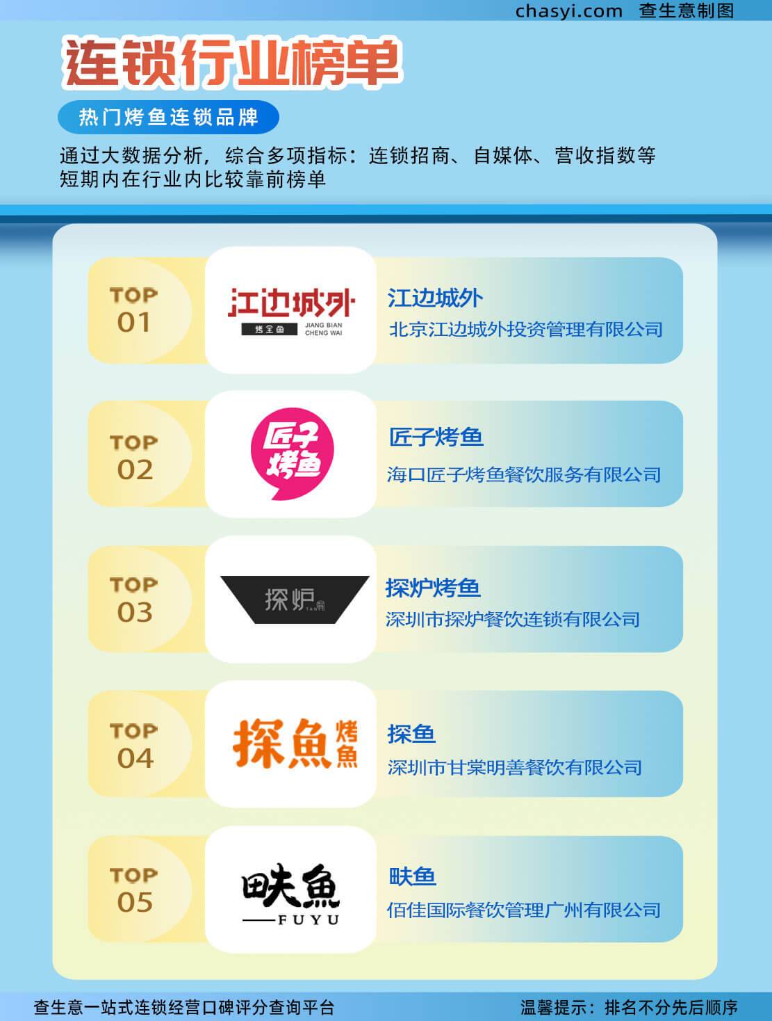 这五大品牌在连锁行业榜单中的优异表现,不仅彰显了它们在烤鱼领域的强大实力和市场影响力,也展示了它们在连锁招商、自媒体运营以及营收指数等多方面的综合优势。相信在未来,这些品牌将继续保持强劲的发展势头,为消费者带来更多高品质的美食体验。