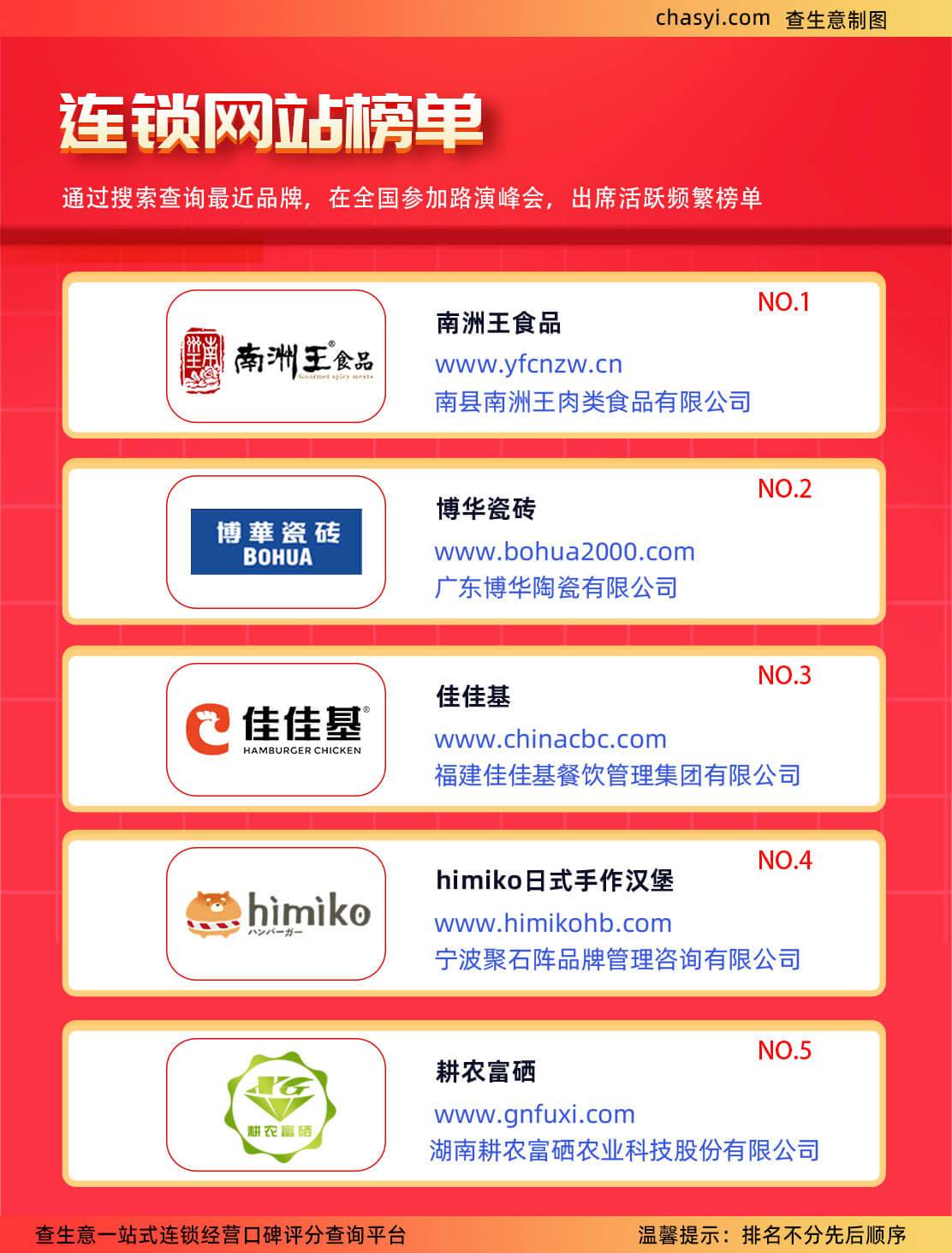 南洲王食品、博华瓷砖、佳佳基、Himiko日式手作汉堡以及耕农富硒这五个品牌,凭借各自的独特优势与创新实践,在全国路演峰会上赢得了广泛赞誉,并在连锁网站榜单上强势崛起。它们的成功,不仅反映了我国消费市场的多元发展趋势,也为相关行业树立了创新经营与品牌建设的优秀范例。