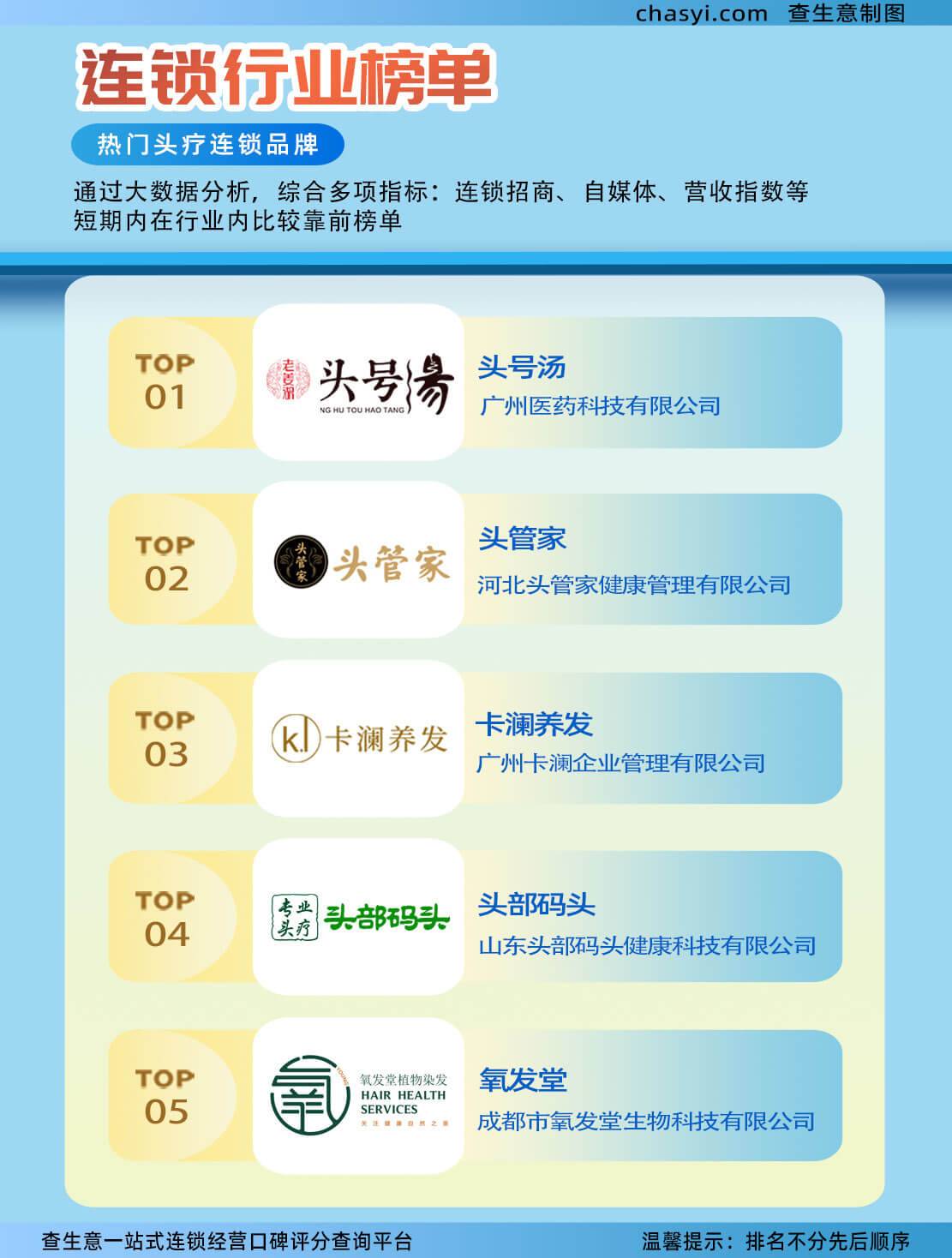 这五家头疗连锁品牌各具特色,都在不同方面展现出了强大的实力和影响力。它们通过不断创新和优化服务,满足了消费者日益增长的健康需求,也为整个连锁行业的发展注入了新的活力。相信在未来,这些品牌将继续引领头疗行业的潮流,为更多消费者带来更好的服务体验。