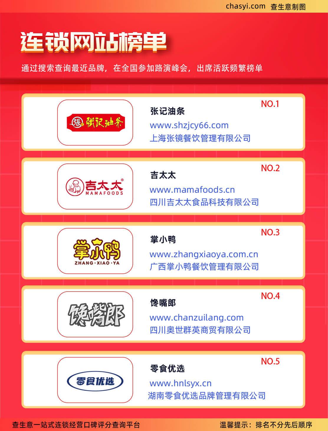 在近期全国范围内举办的连锁品牌路演峰会上,一批兼具创新力与市场影响力的优秀品牌脱颖而出,成为行业内外关注的焦点。这些品牌不仅在产品特色上独树一帜,更在连锁经营与品牌拓展上展现了卓越的战略布局。以下是五家在连锁网站榜单上表现突出的品牌,它们分别是:张记油条、上海张镜餐饮管理有限公司、吉太太、掌小鸭、以及馋嘴郎,各自以独特的魅力引领着行业新风向。