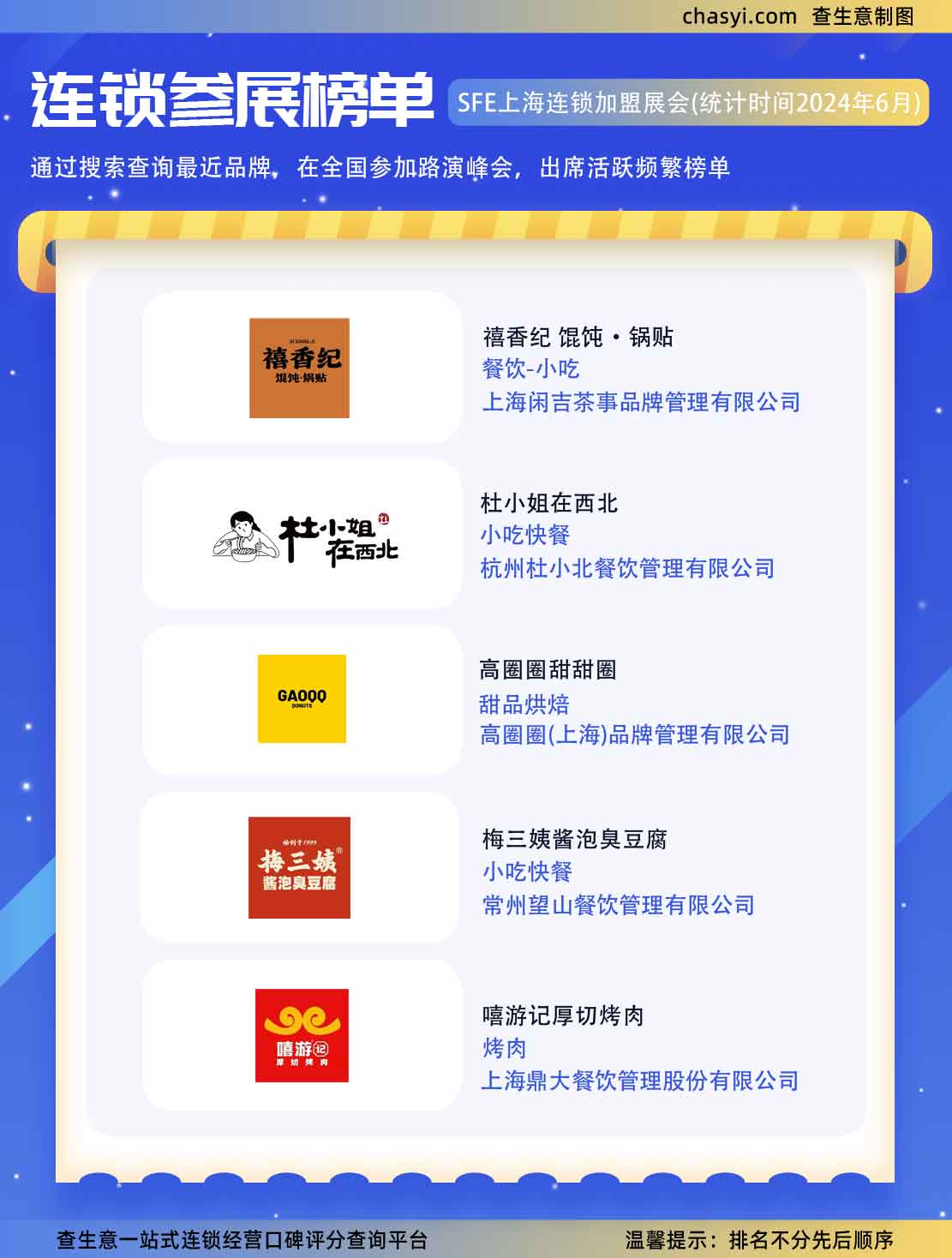 除了上述两大品牌外,榜单上还涌现出了众多各具特色的连锁餐饮品牌。高圈圈甜甜圈以其创意无限的甜品设计和丰富多彩的口味选择,成为了甜品领域的佼佼者;梅三姨酱泡臭豆腐则以其独特的湖南臭豆腐与现代创新酱料的完美结合,挑战着消费者的味蕾;嘻游记厚切烤肉则以其高品质的食材和独特的烤肉体验,成为了肉食爱好者的天堂。