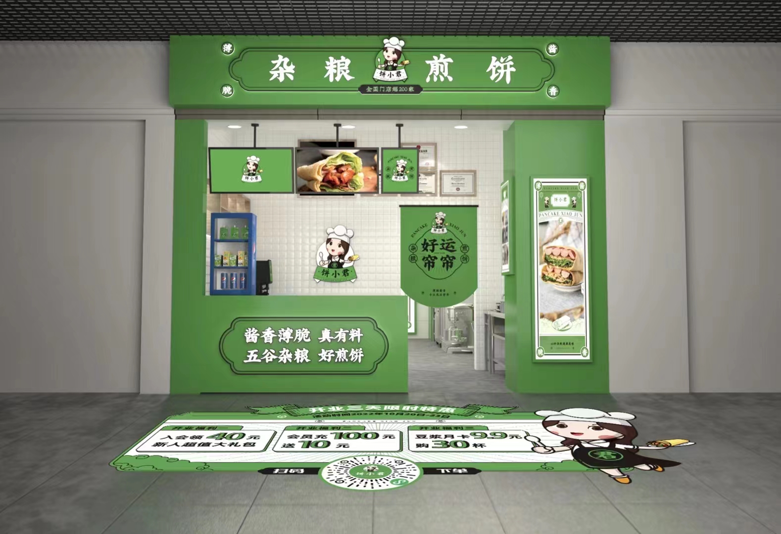 饼小君对门店面积要求不高,10平米即可开店,1-2人完全忙得过来,加上无油烟制餐,大大降低了运营成本。