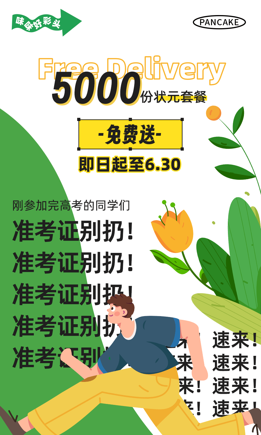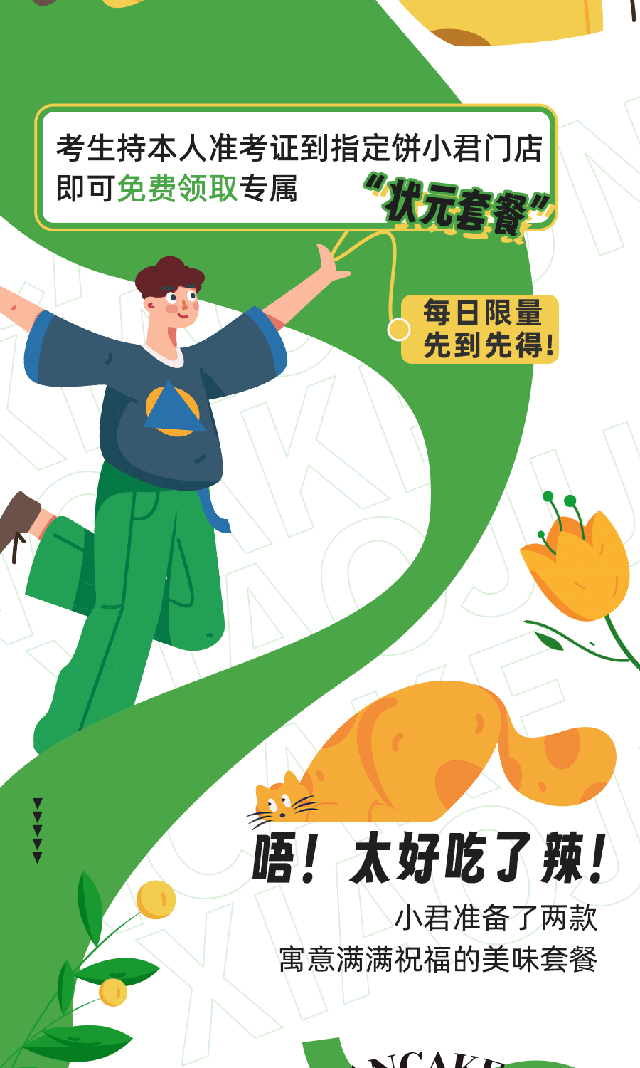 准考证别扔!饼小君杂粮煎饼,5000份状元套餐免费送!