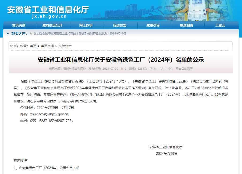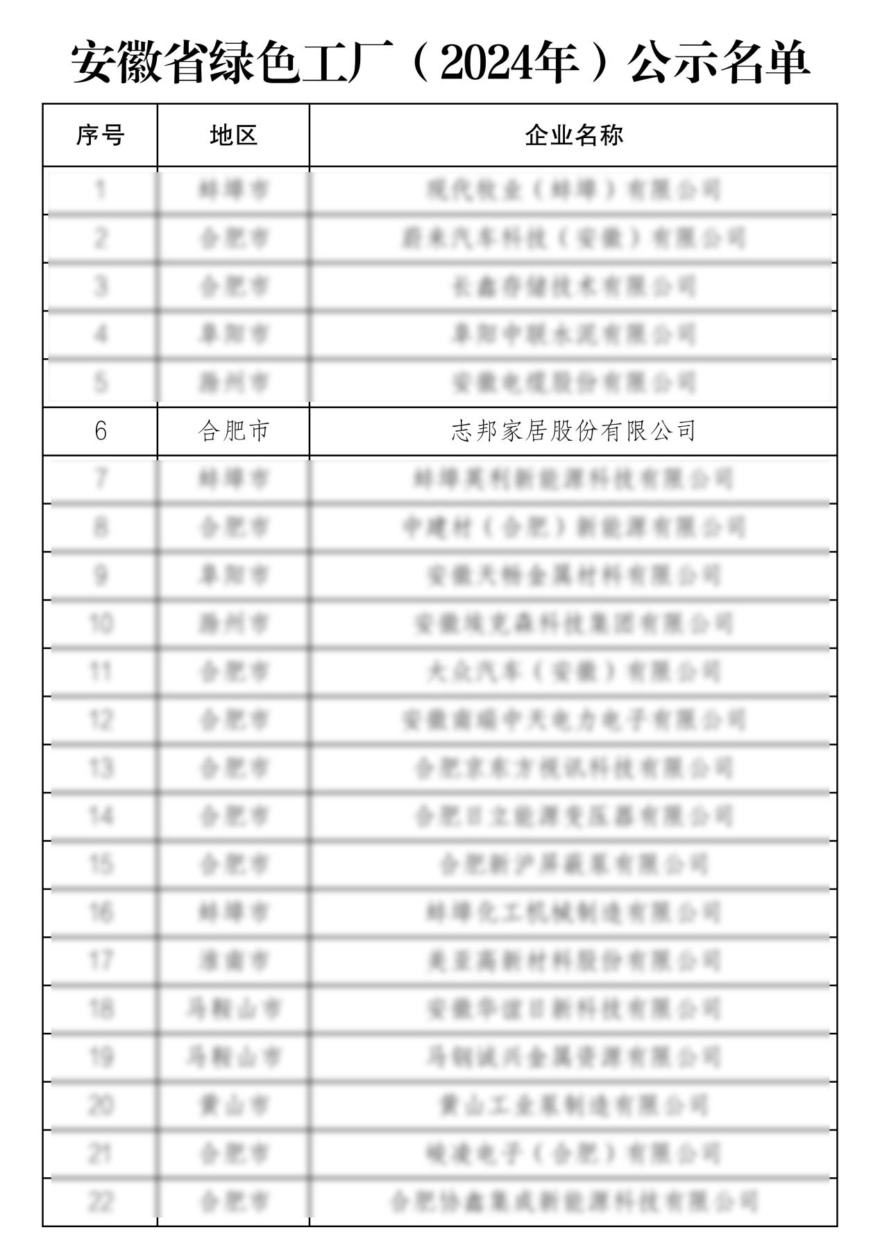 近日,安徽省工业和信息化厅发布了《安徽省工业和信息化厅关于安徽省绿色工厂(2024年)名单的公示》,志邦家居以全流程绿色产业链践行低碳行动,构建高效、清洁、低碳、循环的绿色制造体系,荣获“安徽省绿色工厂”称号。