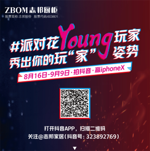 此外,8月16日-9月9日,志邦还携手孙杨、吴莫愁,开展抖音#派对花Young玩家”挑战赛,关注志邦家居官方抖音号,与明星同台竞技就有机会赢取iPhoneX和多款豪华锅具大奖,并设立最佳人气、最佳表演、最佳创意等六大多个奖项,万元厨房好礼送不停!