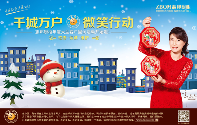 2018年,志邦厨柜“微笑行动”将继续启程,把贴心的服务送到千家万户,把满意的微笑传递给每个人。