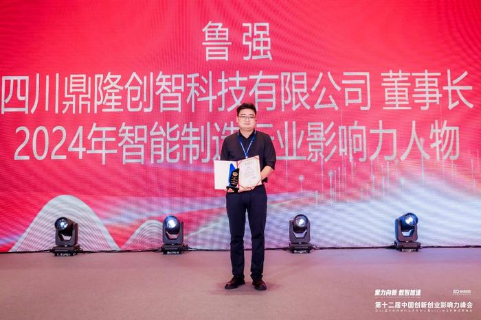 本次活动上同步举办“2024年度创新成果盛典”,主持人宣布:四川鼎隆创智科技有限公司董事长鲁强获评2024年度智能制造行业影响力人物奖。
