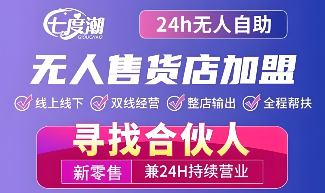 七度潮品牌是情趣用品无人售货新零售品牌。主营店型有标准店、精品店、形象店、旗舰店,提供一站式开店运营支持服务。公司不断研发新品类的产品,向市场上推出的成人用品价格实惠、品质上乘,并且,采取全天24小时无人售货的模式,让人们随时随地进店挑选需要的产品,不仅为消费者带来很大的方便,同时,也为品牌获取到更多的客源。七度潮无人售货机,专业的自动售货机解决方案,多年细作化运营经验,多年来打造品牌加盟模式。从选址、装修、机器安装与铺货、开店宣传、二次销售等全部托管,更提供机器终身免费服务与赔付模式。