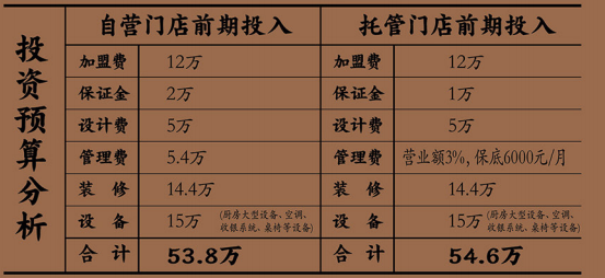 加盟费用 加盟优势 6T管理是为完善公司基础管理,细化各项工作,促进分店现场清洁、整齐、摆放的有效开展,提高各分店的主动和积极性,改善营业现场及店内外公共区域的环境卫生和有序性,进而提高工作效率,提升分店的整体营运管理水平。 餐厅系统化行政管理:值班系统,训练系统,财务系统,人事系统,排班系统。订货系统,维修系统,品控系统,清洁系统,利润管理。 先进的管理:搭建公司内网,建立平台,配合先进软件,实现财务,货品,人员的集中管理;CIS形象识别系统。 加盟条件 A、对餐饮业有了解,对特许经营有一定的认知 B、 具有沟通、领导能力与积极进取的精神 C、 具有足够的资金实力、独立法人的身份资格及良好的企业经营管理经验 D、能够参加总部的培训和接受总部在营运上的统一管理及督导 E、 对投资风险和收益有正确的认知和充分的心理准备 F、 良好的品德操守及信用 加盟流程