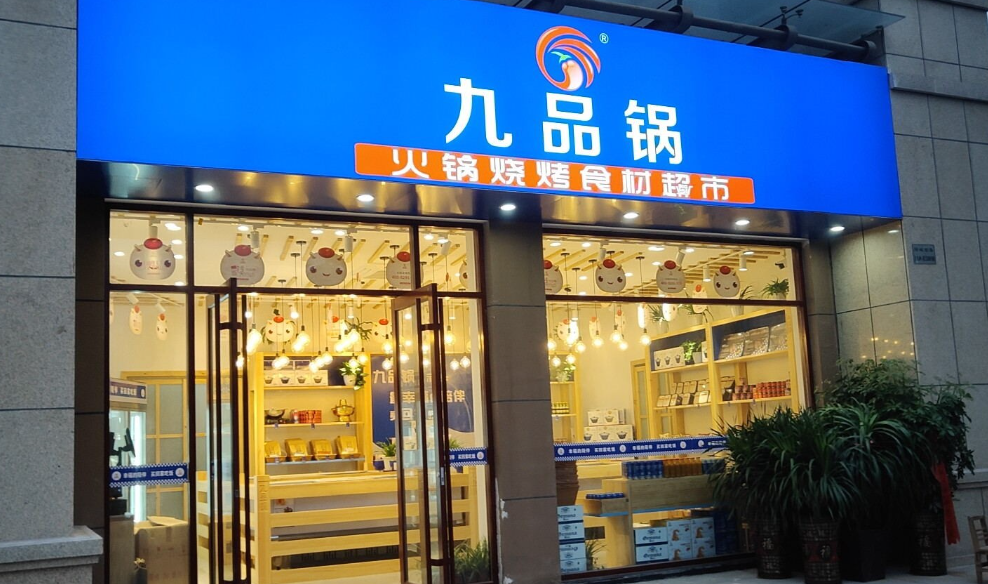 九品锅火锅烧烤食材 是集一站式采购,研发生产销售于一体的集团化公司是国内知名的食材连锁超市也是中国实力强劲的大型食材采购商之一 涵盖18大系列几百款单品,包含卤味熟食,火锅烧烤食材,家庭快餐,川鲁粤菜系,打造全年四季经营无淡季食材超市,三分钟吃大餐等饮食新主张。毛利润在35%左右。 互联网销售平台 + 实体店面 + 超市配送模式为顾客提供产地直达的高品质、高性价比食材 截止2021年3月全国门店已突破1600+ 九品锅强大的品牌影响力已覆盖全国26个省,200+ 城市,数千万客户群体,品牌广告在央视多有播出, 并荣获“2018年度十佳连锁品牌”等荣誉。
