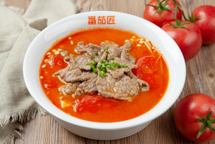 源自新疆的新鲜番茄熬酱,加入新鲜番茄熬煮三分钟,搭配生态牧场的鲜牛肉,肉质滑嫩,酸甜开胃,营养膳食搭配更合理。