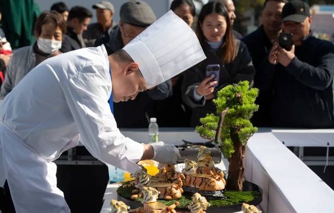 12月1日上午,由金华市商务局、金华市文化广电旅游局、浙江省餐饮行业协会主办的“金华火腿菜·厨神”大赛在金华开赛。一群金华顶级厨神在冬日里的古子城,以火腿为主角一较高下。