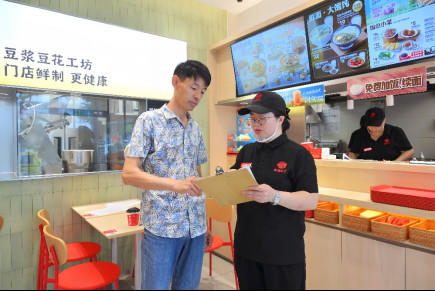 “我原本担心自己缺乏餐饮经验,难以亲力亲为,但永和大王的‘代运营’模式恰好解决了我的顾虑。”高洪银坦言,“从选址、装修到后期运营,每个环节都有专业团队全程支持。”而在他熟悉的“装配门”细节上,品牌方也充分尊重他的建议,“我们优化了门的设计方案,沟通后他们采纳了我的想法。”这种“专业分工+高效沟通”的合作方式,让他感受到品牌对加盟商的尊重与信任。