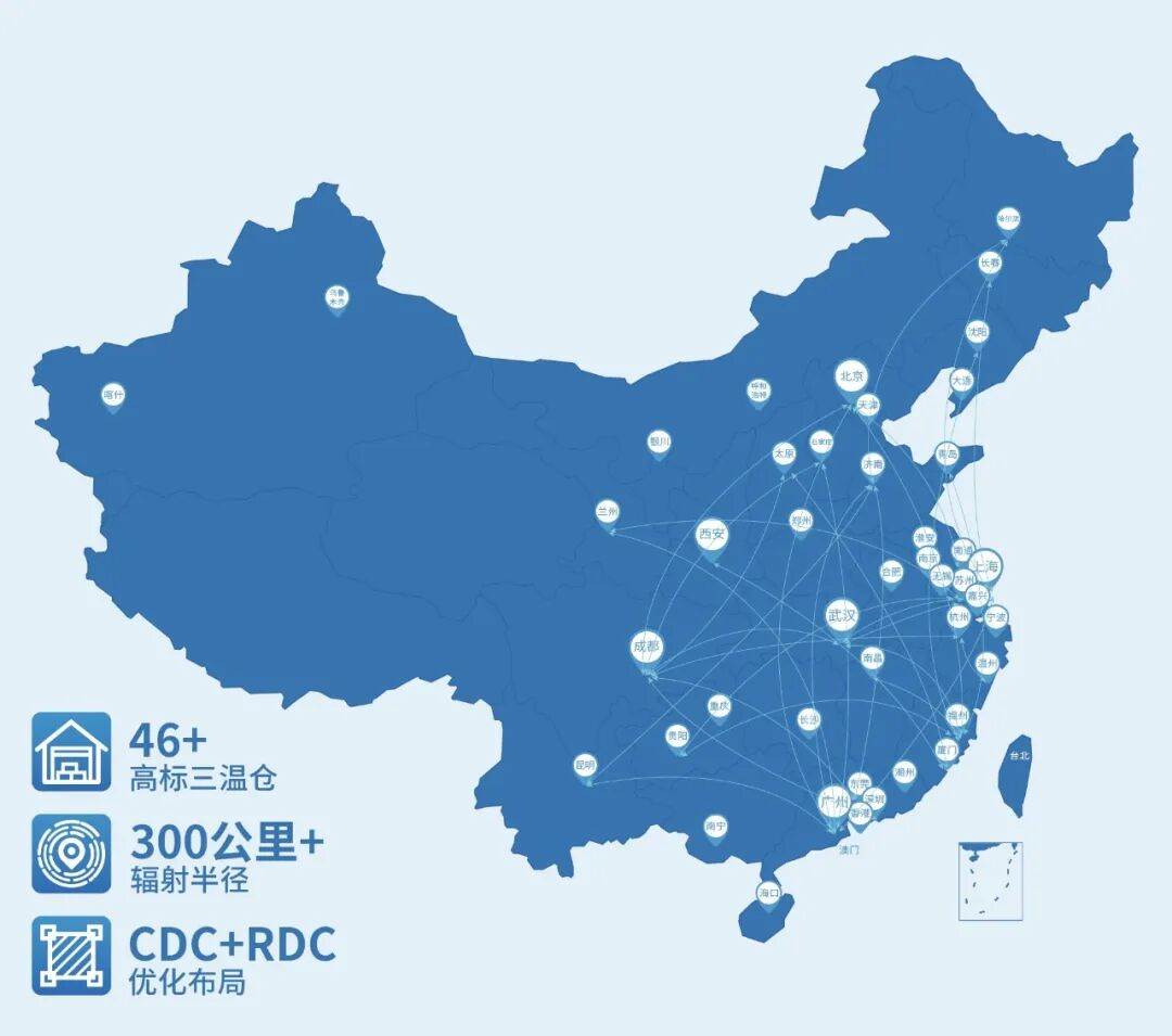 目前,蜀海拥有30,000+多温层运力车辆、300,000+配送点位,自营车辆占比超40%,保障配送可靠性。在一二线城市核心商圈,支持24小时不间断配送,最快半日达店。