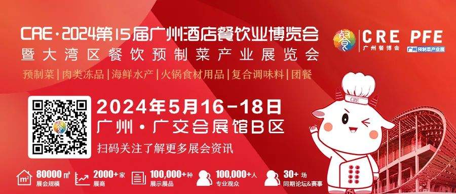 CRE广州餐博会在行业深耕造就历经13载,已成为国内餐饮行业中最具规模和影响力的博览会之一。2024年第十五届中国(广州)酒店餐饮业博览会暨粤港澳大湾区餐饮预制菜产业展览会将于5月16-18日在广交会展馆B区隆重举行,展会得到了国内外2000+品牌展商的大力支持,模式、新产品、新设备最新亮相,展览面积达8万平方米,专业观众超过10万人次。