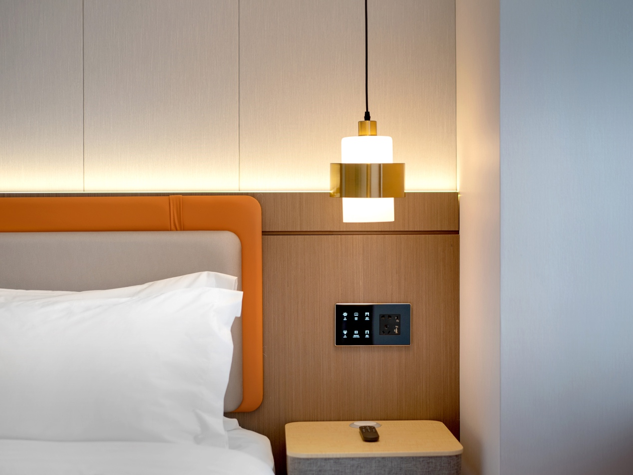 ZMAX满兮酒店·哈尔滨中央大街店的客房均配有智控系统,住客可凭个人习惯和喜好,选择使用房卡或是手机解锁房门,通过客房触控板、手机或是下达语音指令,对客房内的灯光、空调等设备进行个性化设置。