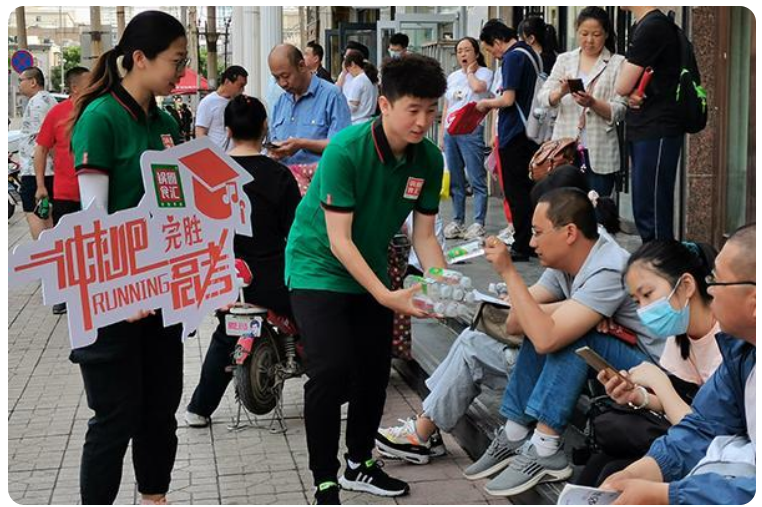 江苏(13地)、河南(5地)、沈阳、天津、太原、济南、陕西及甘肃共8大区域的68个考点门前,一些身披绿色服装的志愿者们吸引了很多人的注意,他们就是锅圈食汇(以下简称锅圈)爱心送考服务队的成员们。高考前夕,锅圈全国各地分公司及加盟商为方便辖区内的高考学子们能顺利考试,第一时间组建了一支支爱心送考服务队,早早来到考场外开展“爱心送水,助力高考”的服务活动。