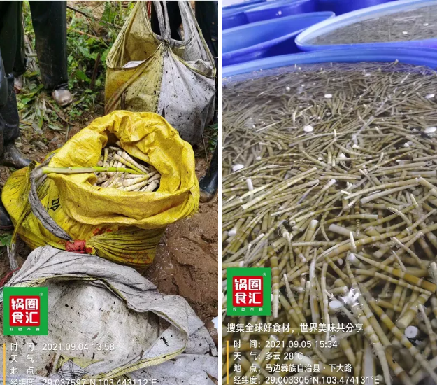 每年4月和9月,当遍地竹笋破土而出,一群来自四川马边彝族自治县的采笋人,他们以家族为单位,或是夫妻,或是亲戚,或是父子、母子,纷纷在公路沿线搭起简易的帐蓬,冒着风雨,踏着泥泞,前往大山深处采笋。 采笋人沿着村里的小溪流前行,熟练地用特制的笋凿,翻动着松软的泥土,一颗颗肥硕完整的竹笋就出现在视野中。 企业带动产业 一起实现共同富裕 依托方竹笋产业,四川马边彝族自治县大竹堡乡蹚出了一条巩固脱贫成果、产业振兴之路。在退耕还林补助的护航下,村民成功实现了产业转型,每年4月和9月形成了采方竹笋的产业布局,村民也靠自己的辛勤付出实现了春秋两季方竹笋的双重创收。