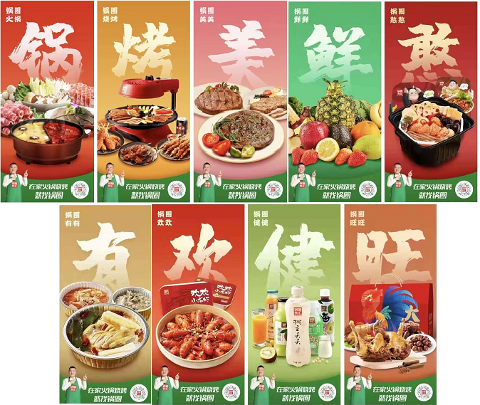 目前锅圈已经形成了包括火锅、烧烤、生鲜、快手菜、卤味等八大家庭食材品类,既有洗切配完好的蔬菜肉类等预制菜,也有即食即热方便一人食品牌“憨憨”系列,以及锅圈最具优势的火锅烧烤品类预置配菜,也有对应的配料和锅具。