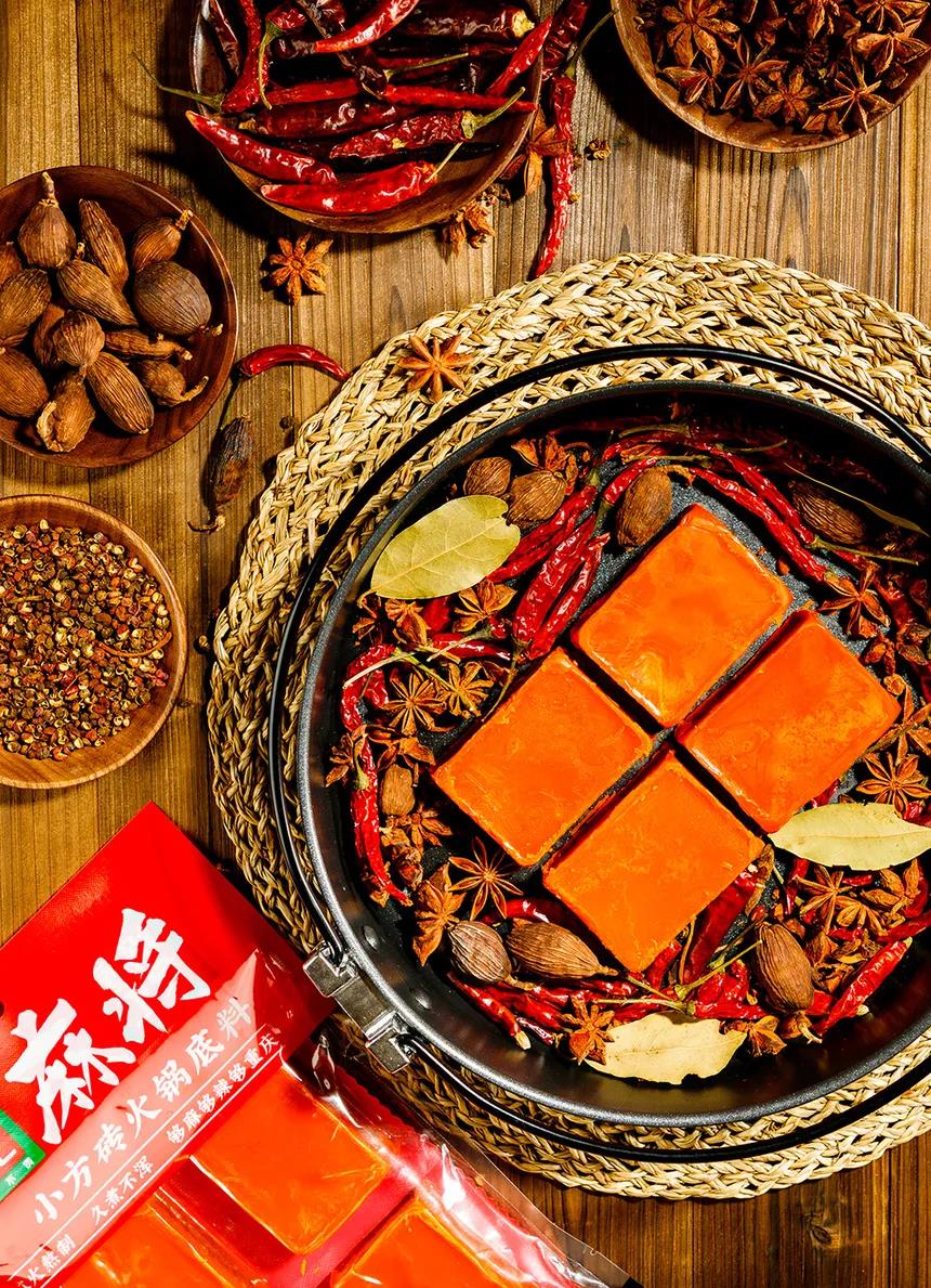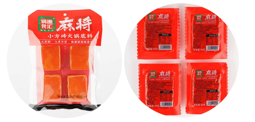 一口吃回重庆 毫不夸张地说,小方砖锅底我能天天吃!整包底料分成四块,压缩成麻将大小单独包装,吃的时候按需取量,干净卫生,可以说非常人性化了。