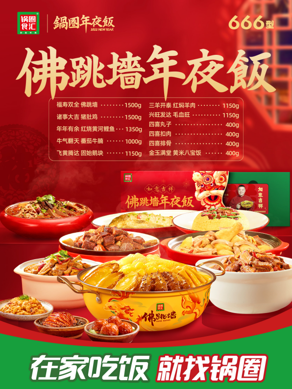 锅圈年夜饭可谓丰盛至极,融汇了闽菜、川菜、豫菜、湘菜、鲁菜等多种地方传统菜系,道道经典!