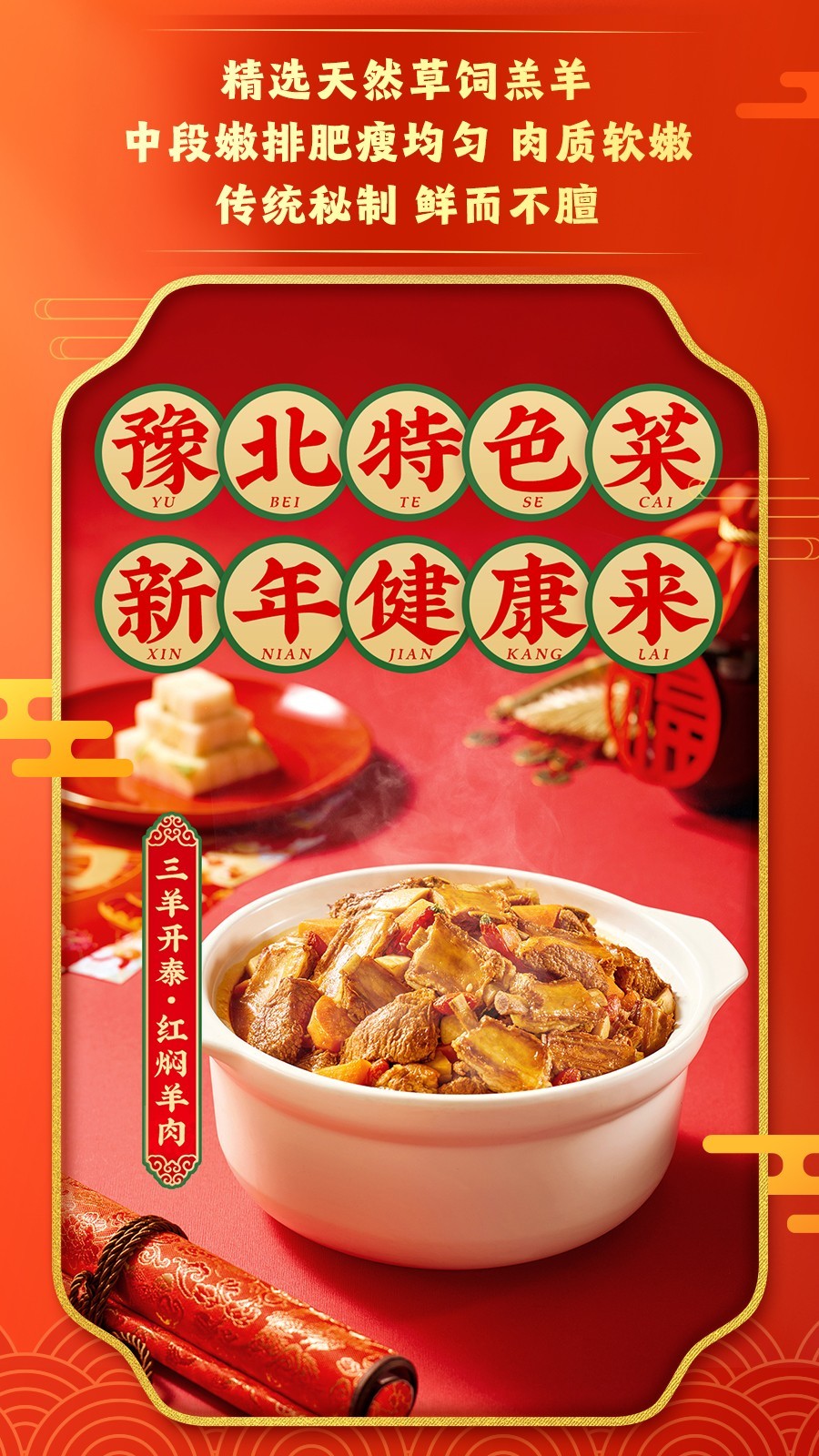 锅圈年夜饭必吃榜三:三羊开泰--红焖羊肉!融合涮羊肉和四川火锅的特点,选用6个月内的草饲羔羊,肥瘦相间,口味浓郁!