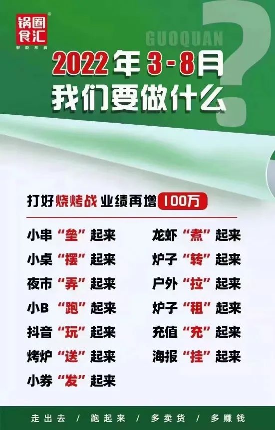 锅圈的烧烤战略有了新的认识,从前觉得烧烤可有可无,一下子觉得烧烤潜力巨大、商机无限,一定要抓住这个风口。 在听烧烤战术讲解时,接触了烧烤“十三条军规”,第一次知道了烧烤的各种玩法:烧烤摆摊、烧烤团餐、小B开发……任何一种玩好了,就能轻轻松松做好业绩,顿时豁然开朗,原来条条大路通罗马!
