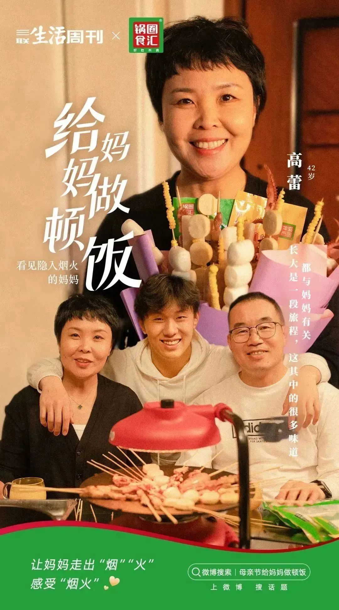 作为社会观察者和社会好邻居,锅圈食汇时刻谨记“为社区生活提供解决方式”的使命。在日常生活里,锅圈食汇观察到,母亲依然是家庭厨房使用频次最多的人。她成就了家人,却牺牲了自己的时间,也失去了自己本该拥有的更多可能。锅圈食汇期待用自己的力量,推动更多儿女们赞美母亲的劳动,肯定她们在母亲身份之外的个人价值。母亲们不必总是“隐入烟火”,她们也可以拥抱春天的第一束鲜花,她们也拥有追求美的权利。 历经6年发展,锅圈食汇的业务由火锅延伸至烧烤、快手菜、卤味、速食、生鲜和零食等品类,能够满足社区居民多种生活饮食需求。王程就曾在小区楼下,和妈妈一起采购过锅圈食汇的快手菜,母女俩用等待菜品加热的时间,开心地讨论着下个假期的出行计划。王程的妈妈说,“不是每一顿饭都一定要我自己来做,我想省下这些时间,做回过去那个爱闹爱玩的自己。”