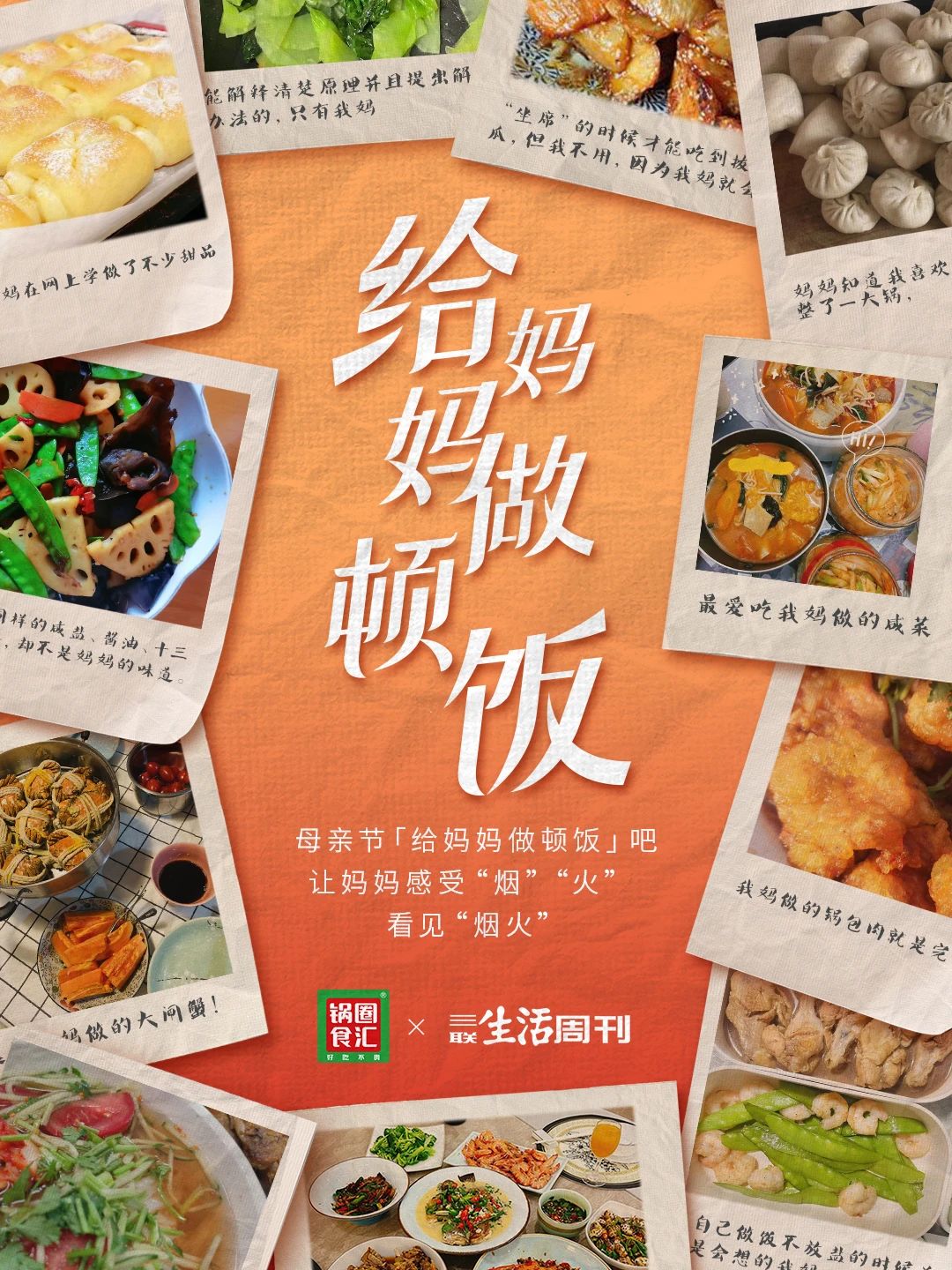 对我们大多数人来说,“妈妈的味道”是记忆中最温馨的味道。为我们准备一桌好菜,是妈妈们的日常,也是她们向我们表达爱的方式。 而一荤一素,看起来简单其实不省事。为了做好一顿饭,我们还没起床妈妈就已经去菜市场买菜,回家以后的流程更加琐碎:择菜、洗菜、切菜、配菜和炒菜。在早饭结束之后,又是午饭和晚饭……时间这个概念,在妈妈们的生活里被一日三餐给精准切分。 我们的妈妈也本该有自己喜欢的事和生活。她们可能喜欢交友旅游,喜欢逛街看电影,喜欢跳舞听音乐,喜欢种草养花。 很多子女也想帮妈妈从做饭这类繁重的家务中解脱出来,我们曾经给她买过扫地机器人、洗碗机甚至炒菜机,但妈妈却觉得不方便,还说我们乱花钱。我们也曾经立下无数的flag,每周要帮妈妈做些家务、陪陪她们,但繁忙的工作以及临时的加班,让我们自己都不能按时回家吃饭。 表达对妈妈的爱其实也挺简单,我们可以从给她做一顿饭做起。在刚刚过去的母亲节,我们和三联生活周刊共同发起了“母亲节为妈妈做一顿饭”的主题活动。上线一周这一话题的热度已经超过了4亿,有很多网友跟我们讨论了给妈妈做饭的计划。