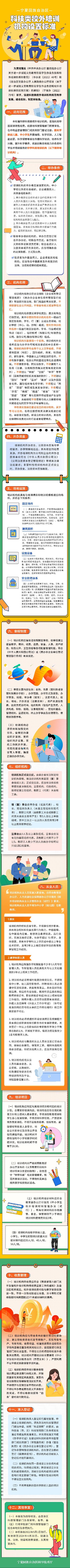 此标准针对的科技类校外培训机构,是指利用非国家财政性经费,经属地科技管理部门前置审批,在市场监督管理部门或民政部门登记注册的面向学龄前儿童、中小学生开展编程、科学实验、人工智能启蒙、科学探索等旨在传播科学知识、培养科学兴趣、提升科学素养、拓展创新思维能力的各类科技培训服务的非学科类培训机构。标准涵盖举办条件、场地设施、从业人员、培训项目等12类事项。