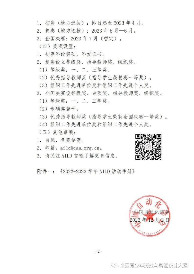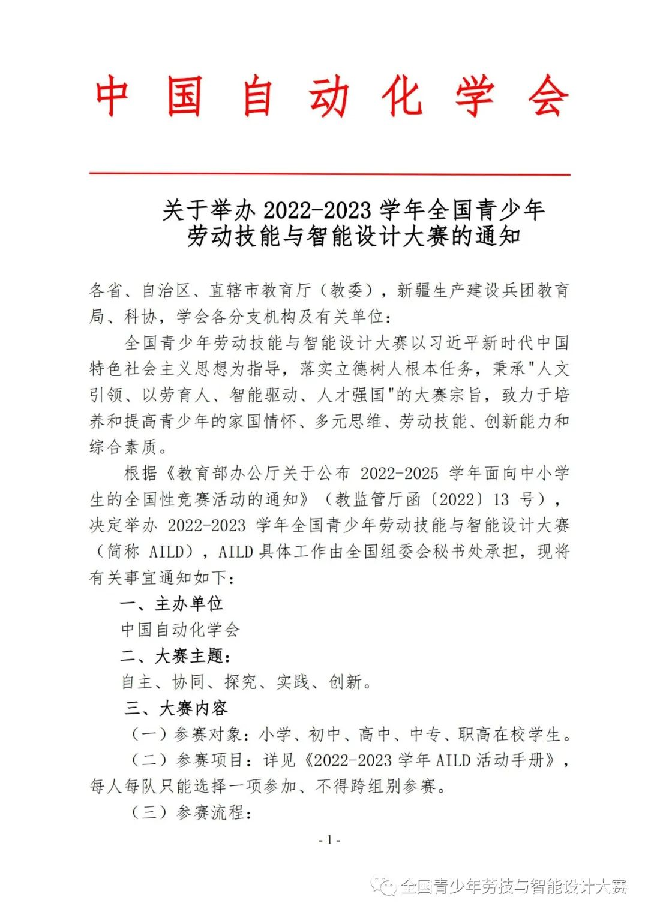 关于举办 2022-2023 学年全国青少年劳动技能与智能设计大赛的通知 (点击左边文字跳转上方图片链接)